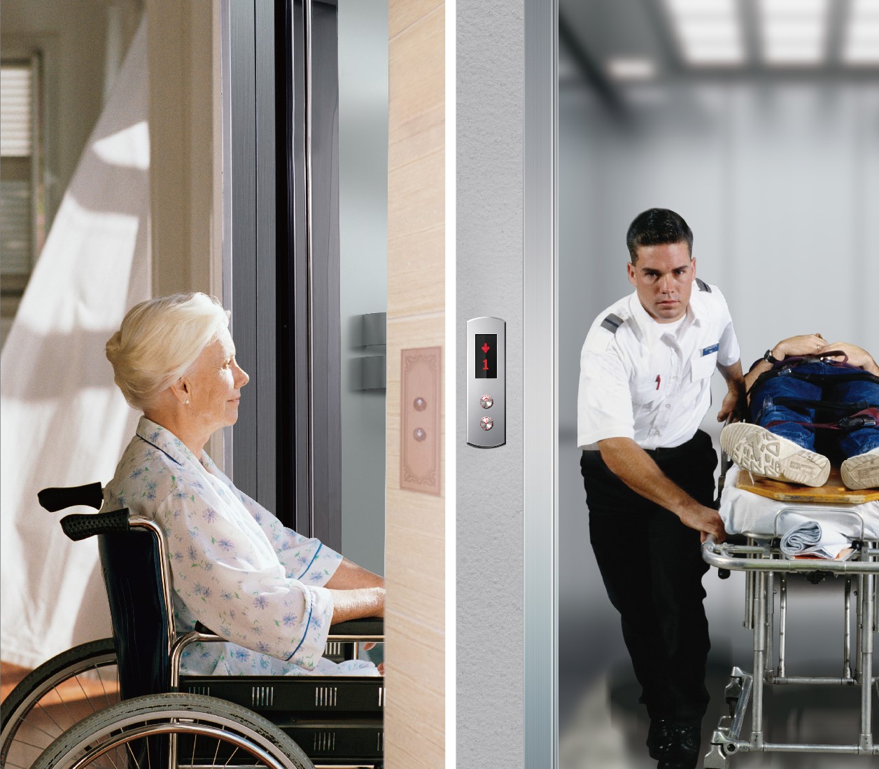 FUJI Hospital bed elevator considers sufficiently special demands of hospital in design process. Realize easy placement of medical apparatus and instruments insides elevator, providing working convenience for medical workers.